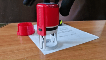 Встроенная штемпельная подушка имеет чернил на триста оттисков. Возможна заправка. Цена печати с такой ручкой 1100 руб. Видеоописание.